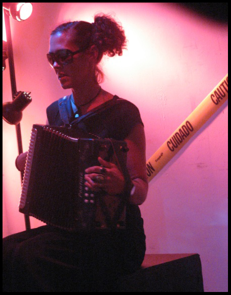 She taught herself the accordion and started playing around Los Angeles at venues such as Bordello Bar, the Rainbow Bar & Grill, Highways Performance Space, Club Ding-A-Ling, the Mbar, the Talking Stick, the UnUrban, James Gray Gallery, Elizabeth Paige Smith Atelier, Robin’s Sculpture Garden, the Abbot Kinney Festival, and the Los Angeles Accordion Festival.