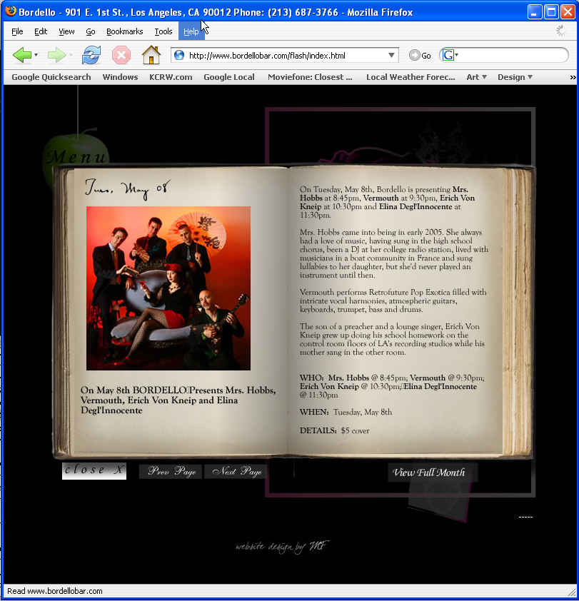 The May 8 show at Bordello was fabulous! First of all, the look of the club is gorgeous. It's velvet-red-gold-ornate-baroque-fin-de-siecle-decadant loveliness.