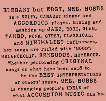 Visit the Shows page for the latest information on where to see Mrs. Hobbs perform.